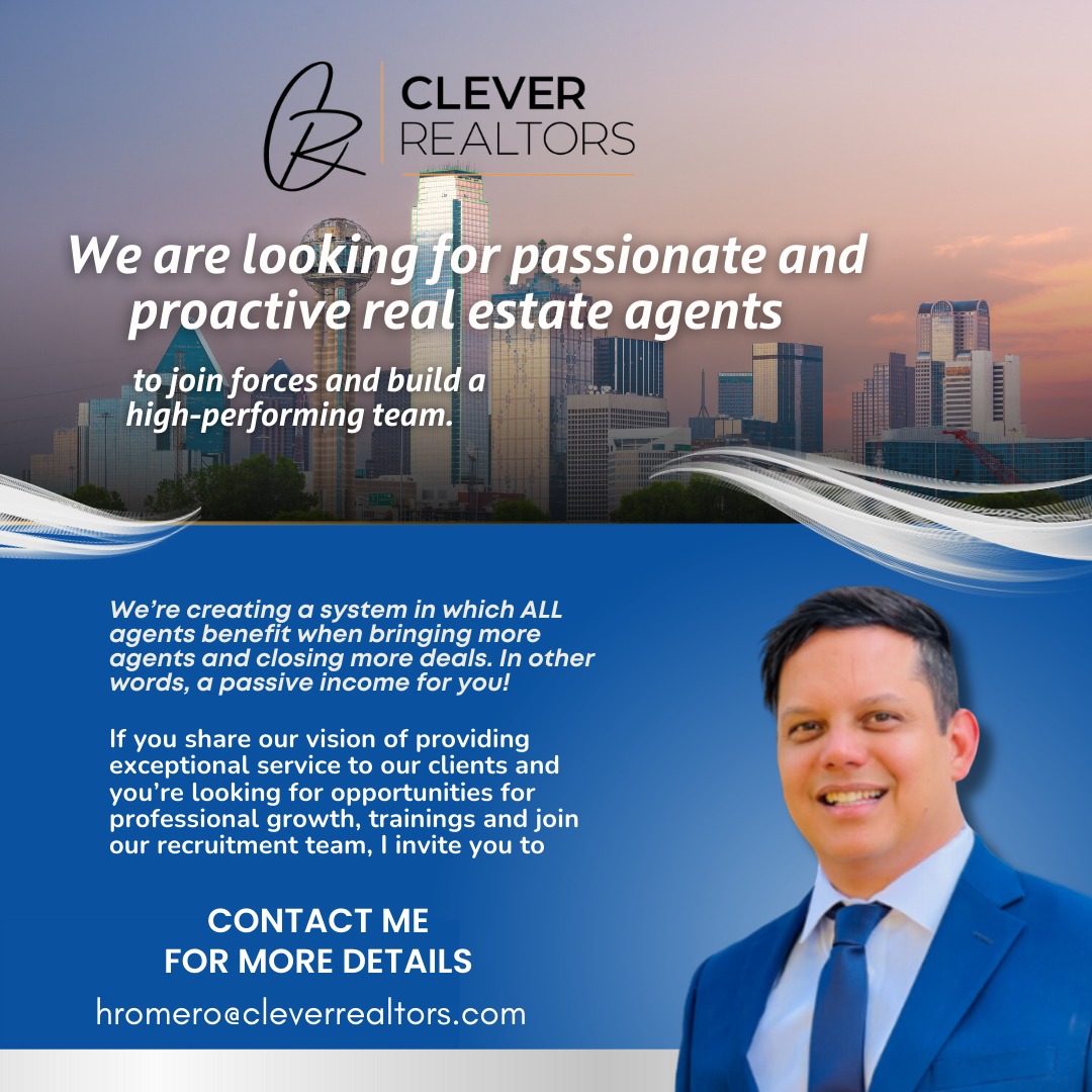 Our team of Clever Realtors has been successful in transactions and customer service satisfaction. We enjoy helping our communities in the Dallas – Fort Worth area. Join us today and enjoy of a 100% commission for you.